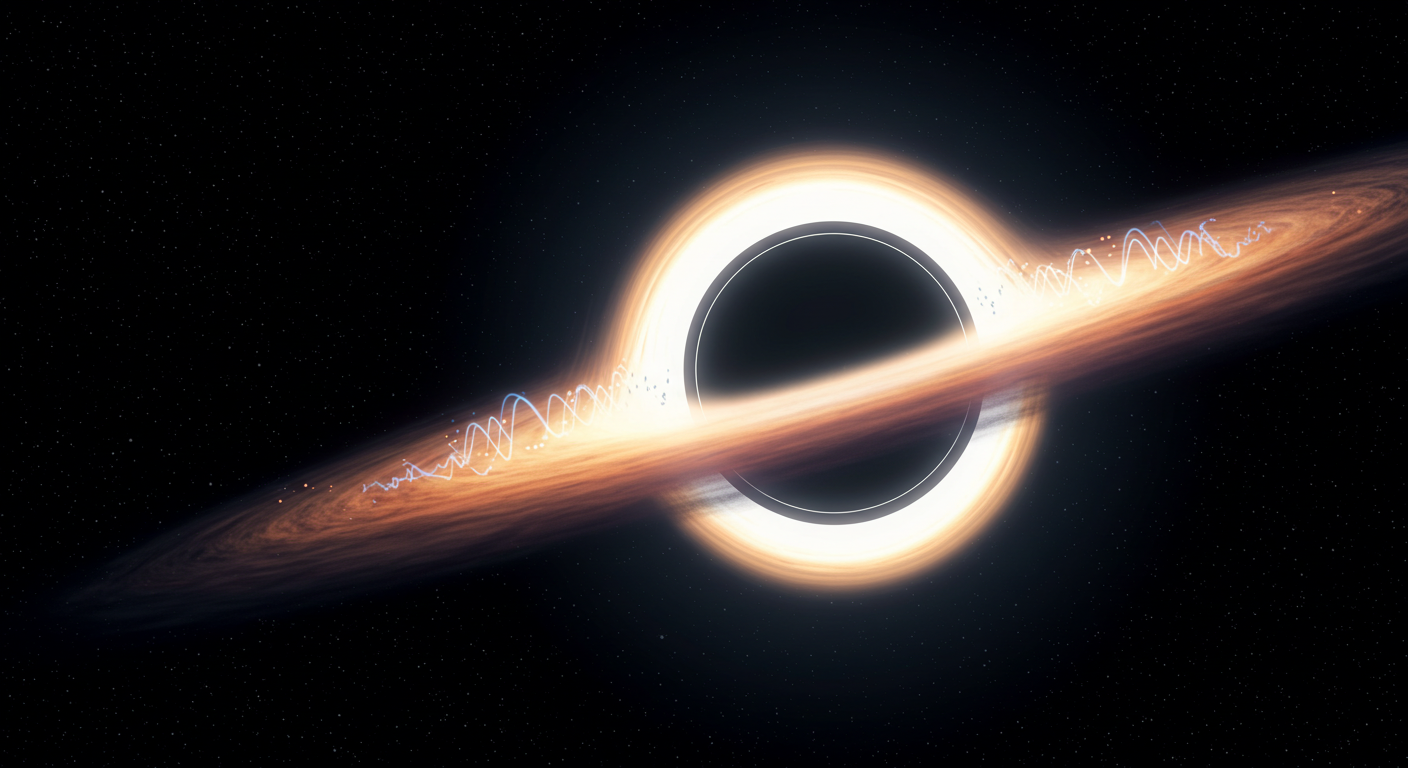 최근 연구에 따르면, 이 회전 블랙홀에서 특정 고정 주기의 빛 진동이 반복적으로 관측되며,