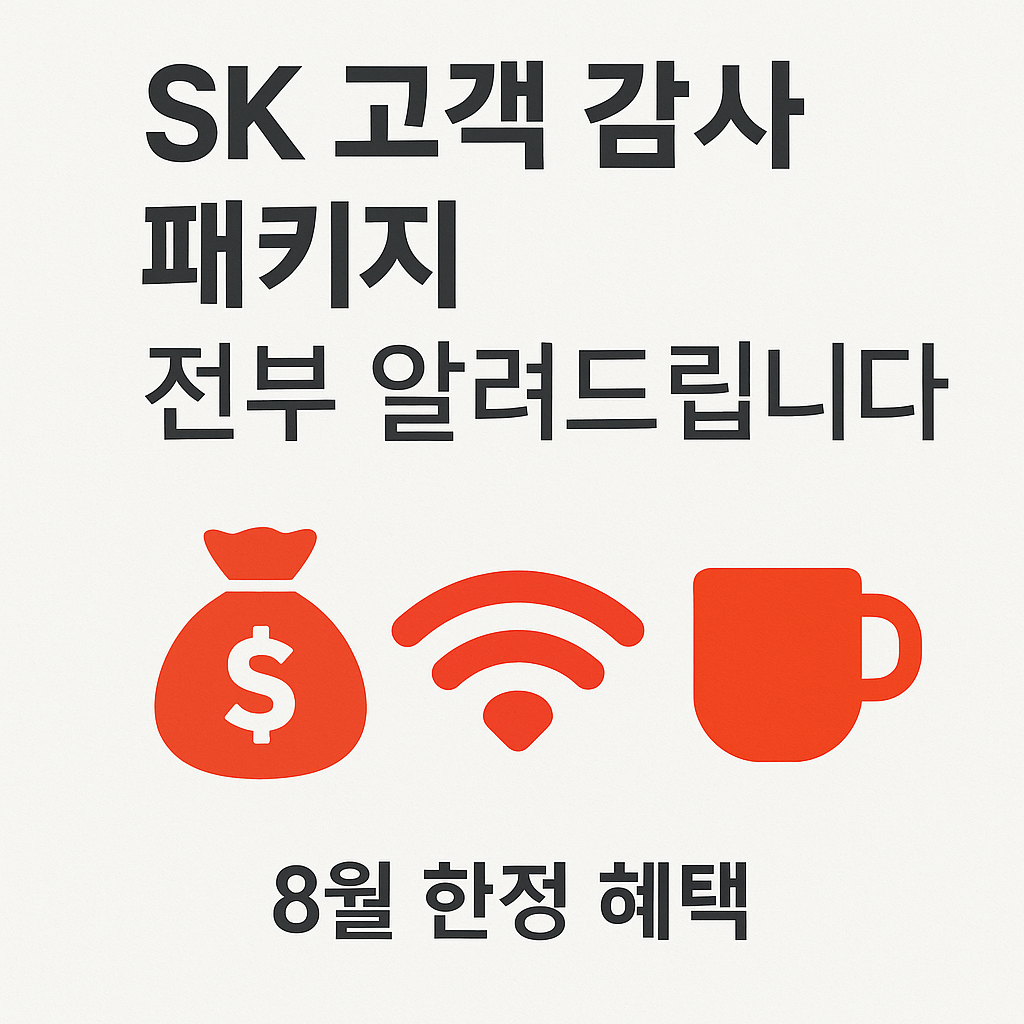 8월 한정 SK 고객 감사 패키지로 통신비 반값 절약, 데이터 추가, 생활 할인까지! 절약한 금액을 재테크로 전환하는 실전 가계부 전략을 알려드립니다.