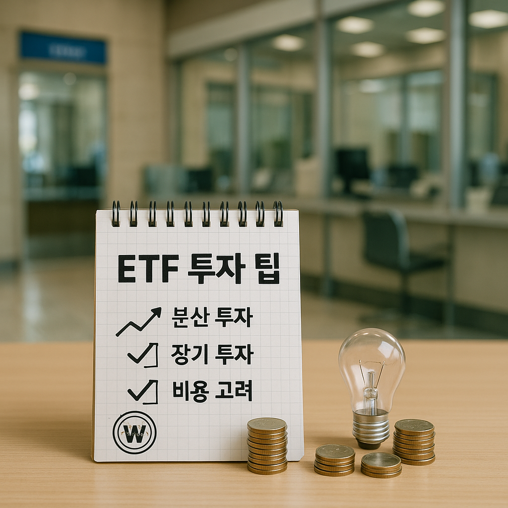 ETF(상장지수펀드)는 한 번에 다양한 자산에 분산 투자할 수 있고, 수수료도 저렴해서 장기 투자에 잘 어울립니다.